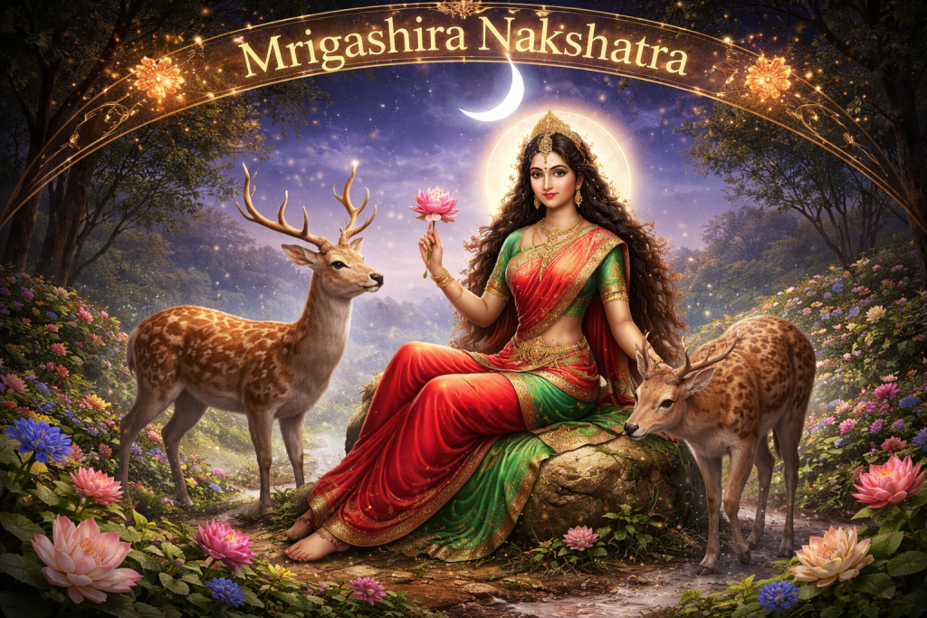 Mrigashira Nakshatra is one of the most fascinating and sensitive nakshatras in Vedic astrology. It carries a soft, curious, searching, and intelligent energy that makes it very distinct from many other lunar constellations. The word “Mrigashira” comes from two Sanskrit terms: “Mrig,” meaning deer, and “Shira,” meaning head. Together, the name is often understood as “the head of a deer.” This symbolism is deeply meaningful because it reflects the basic nature of people born under this nakshatra. Just like a deer is alert, graceful, gentle, and always aware of its surroundings, Mrigashira natives often show a personality that is sensitive, observant, restless, and constantly searching for something meaningful in life.